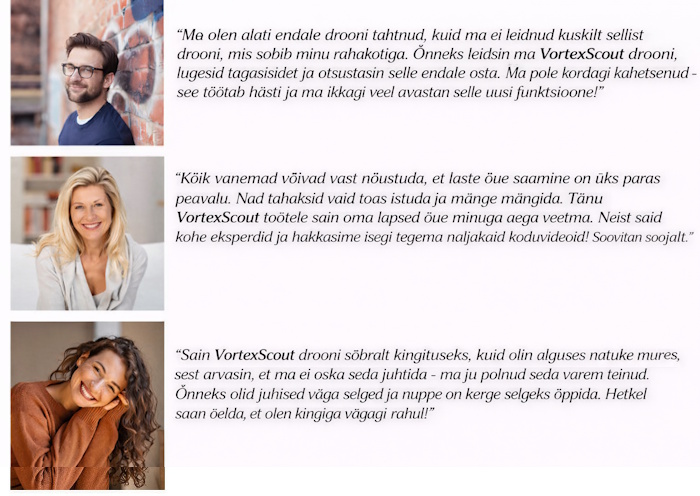 « Vajutage siia, et jätkata VortexScout drooni tellimist oma riiki »