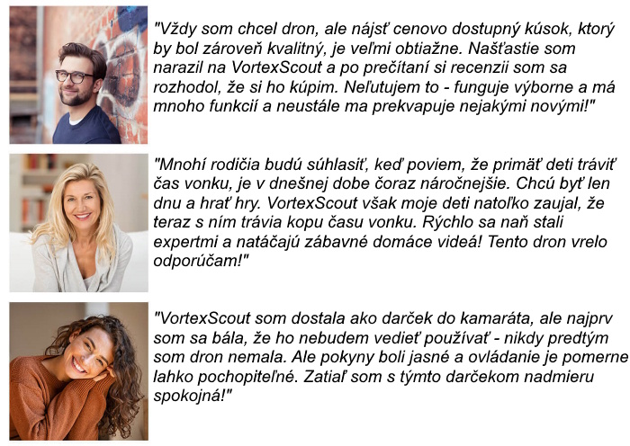 Kto nechcel aspoň raz v živote vlastniť dron? Sloboda skúmania sveta z rôznych uhlov, natáčanie videí, fotenie selfie ľubovoľným spôsobom – kvalitný dron to dokáže všetko. Avšak kvalitný dron vie byť objemný a drahý. No teraz tu máme VortexScout. Teraz môžete mať to najlepšie, čo drony vedia ponúknuť. A nemusíte utratiť celý majetok ani prenášať ťažké zariadenie. Zabavte sa na vlastnú päsť alebo s rodinou. Zabavte svoje deti alebo zachyťte chvíle na dovolenke – vďaka VortexScout!